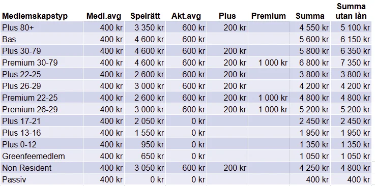 Observera att alla avgifter som tillhör din medlemskategori måste betalas för att medlemskapet ska vara fortsatt aktivt efter 15 mars. De avgifter som är upplagda i Min Golf tillhör din medlemskategori och är obligatoriska och ska bockas i för betalning. Om du vill uppgradera medlemskategori, göra andra ändringar, lägga till bagbod, skåp eller om du har andra frågor, hör gärna av dig till kansliet.