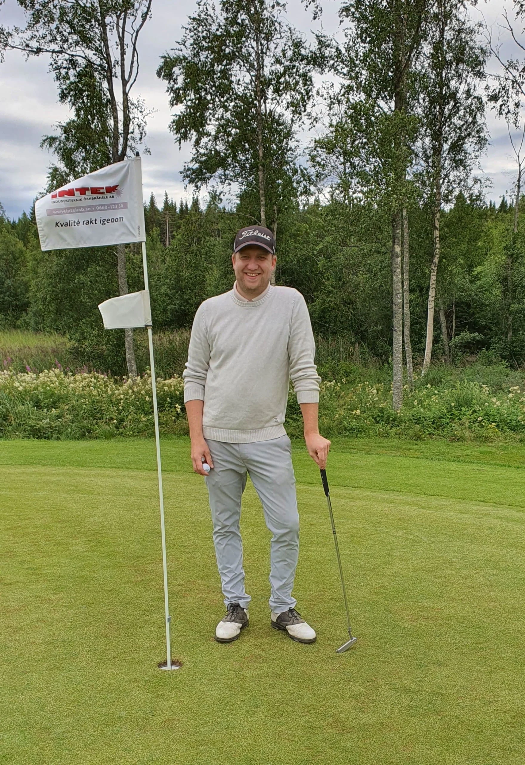 På hål 3 sänkte Marcus sitt utslag med järn-9:an för sitt första Hole in One och en lätt seger av hålet!