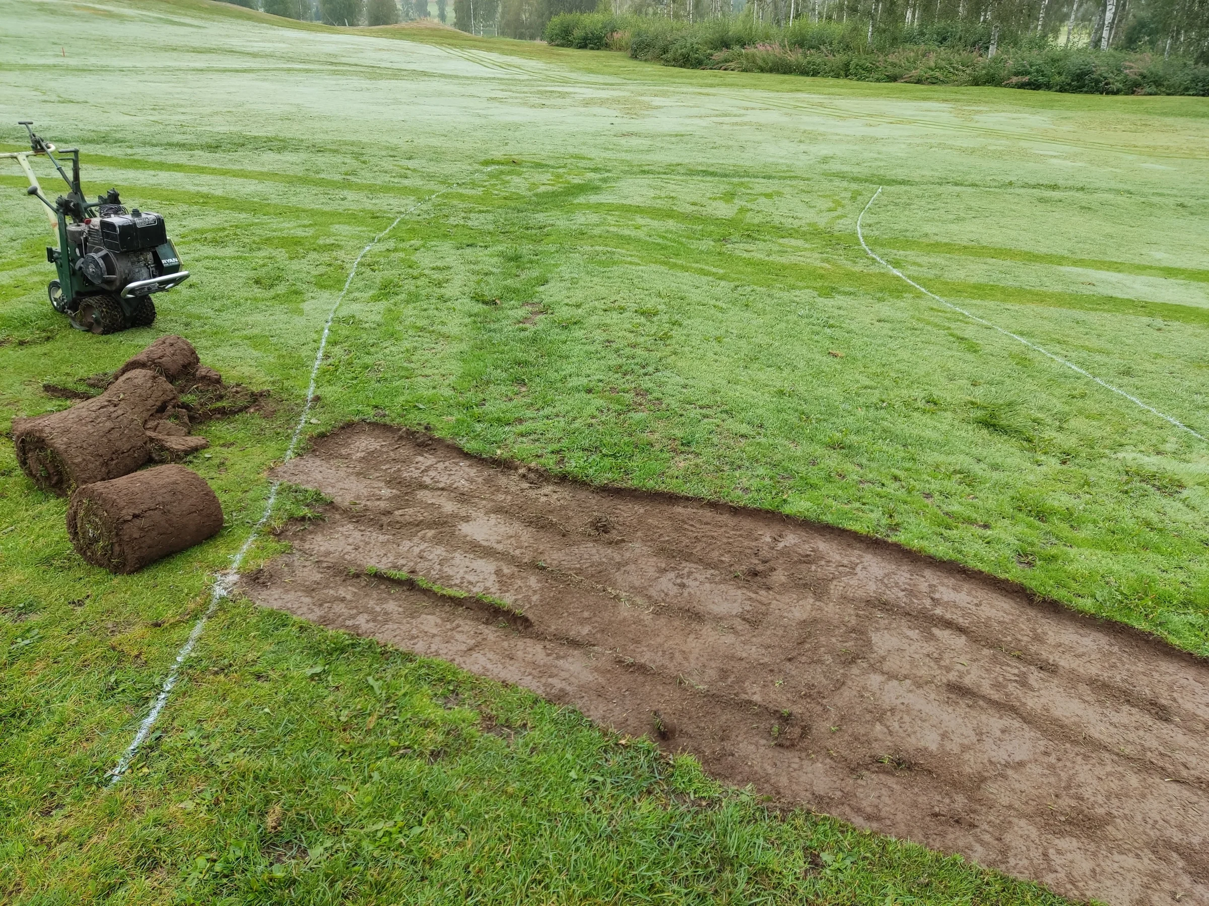 Vi började med att torva av den befintliga turfen.