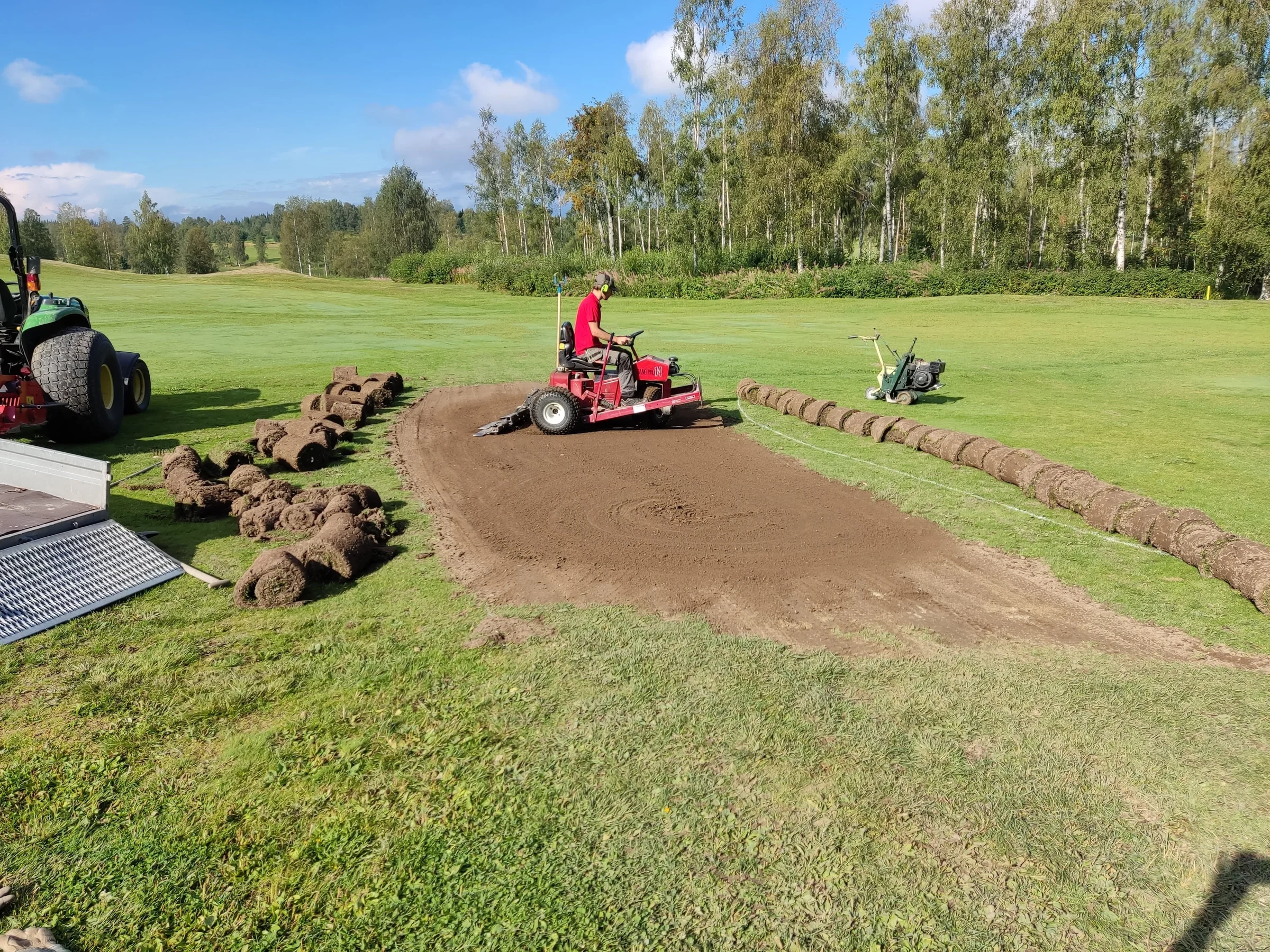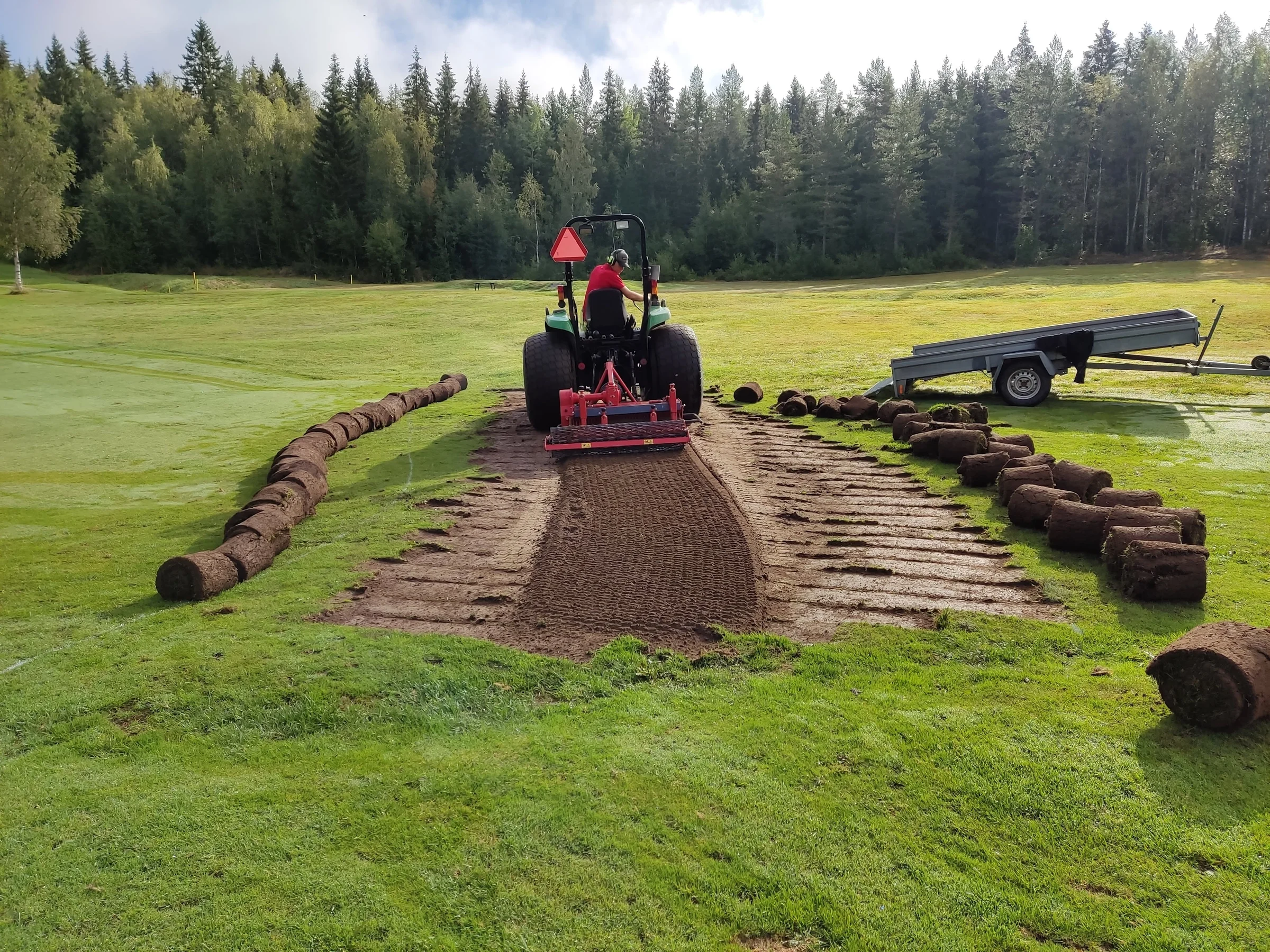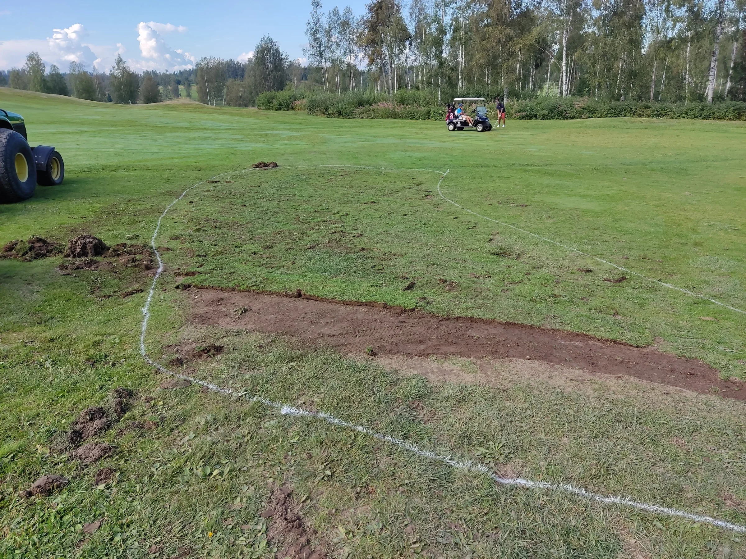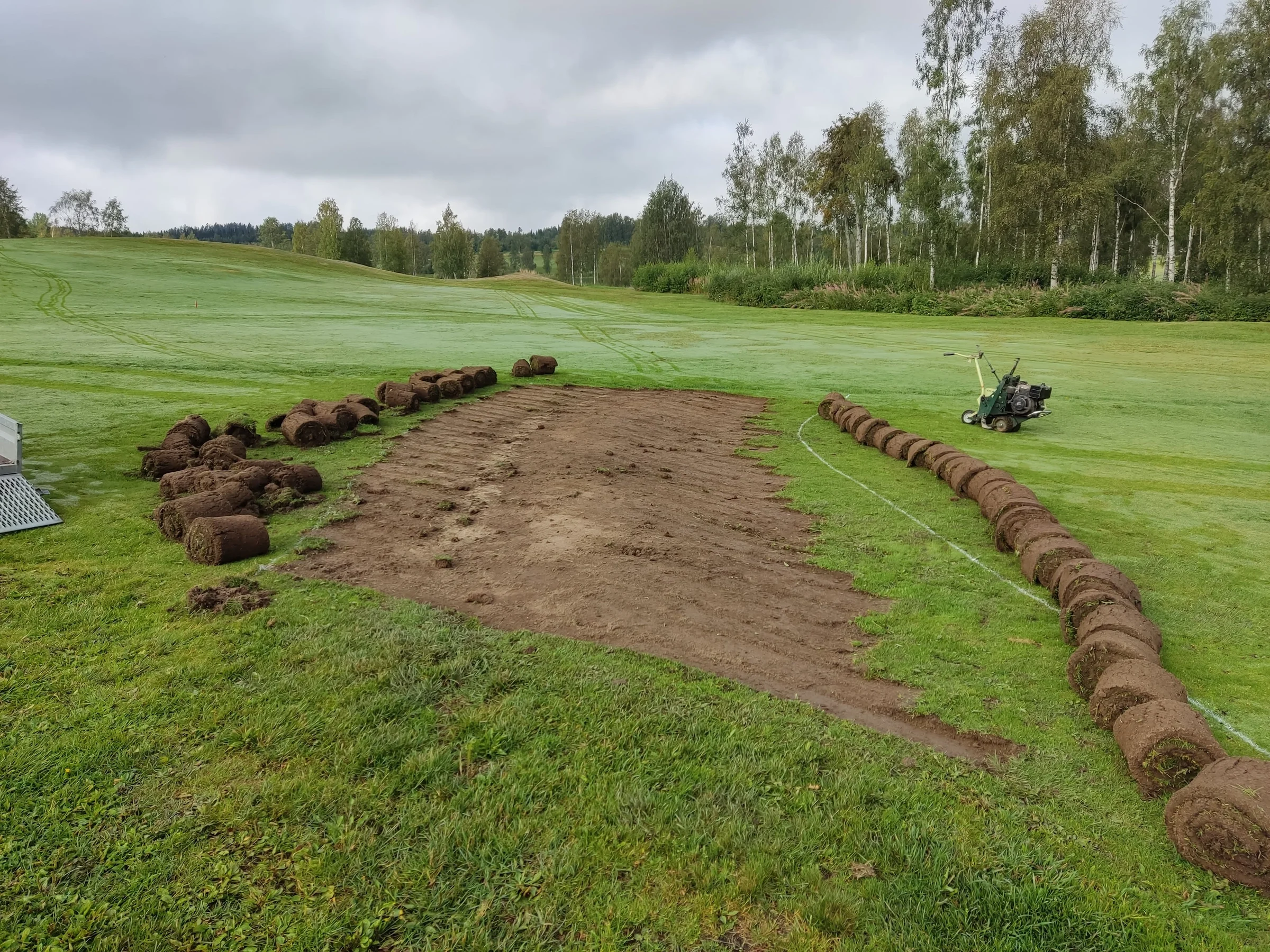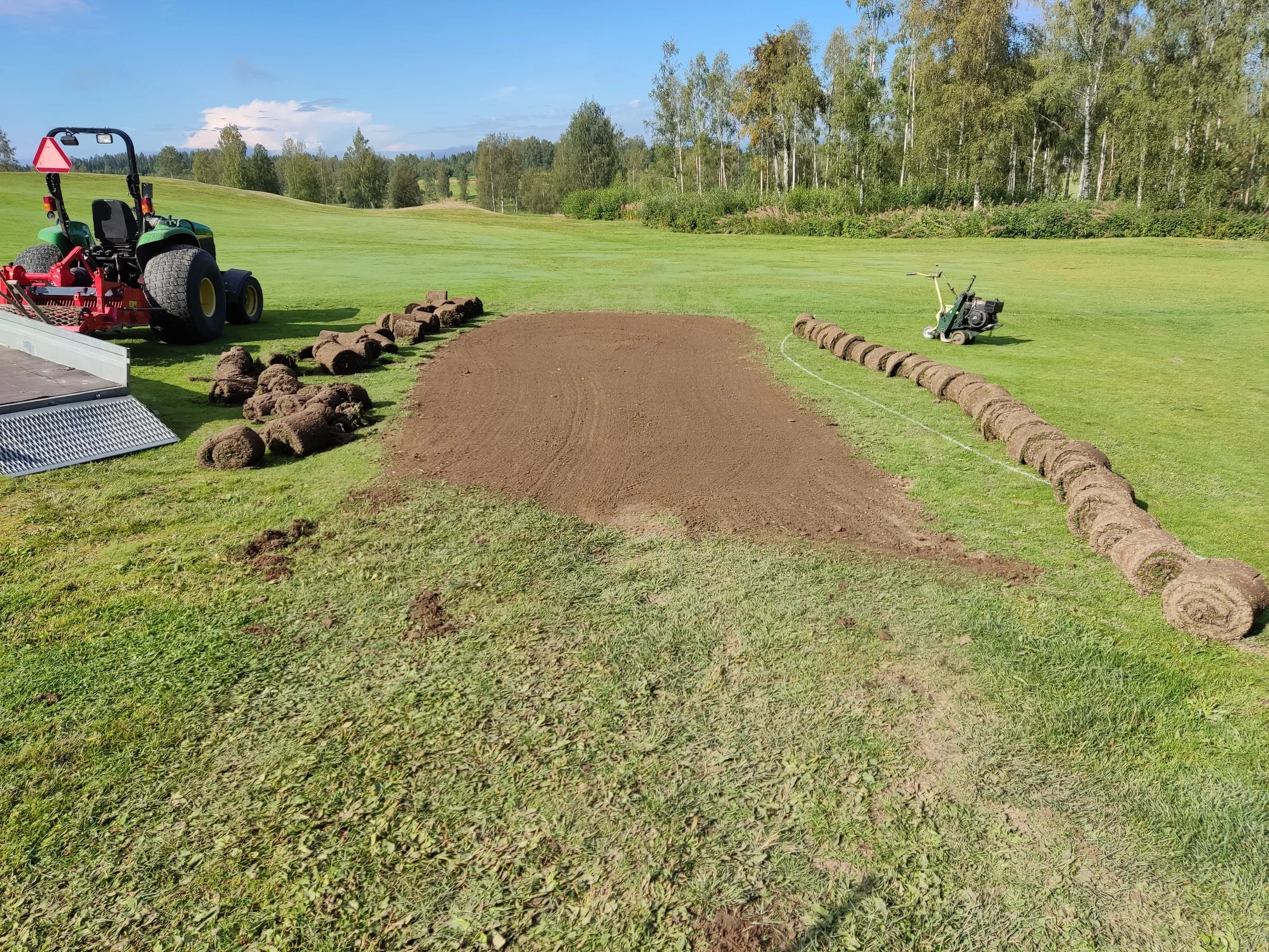 Vi har gjort en liten försöksyta på fairway hål 8. Målet va att prova några metoder hur man ska tackla ojämnheter. Denna yta innehöll både högpunkter och svackor. Troligen en gammal dränering som satt sig.