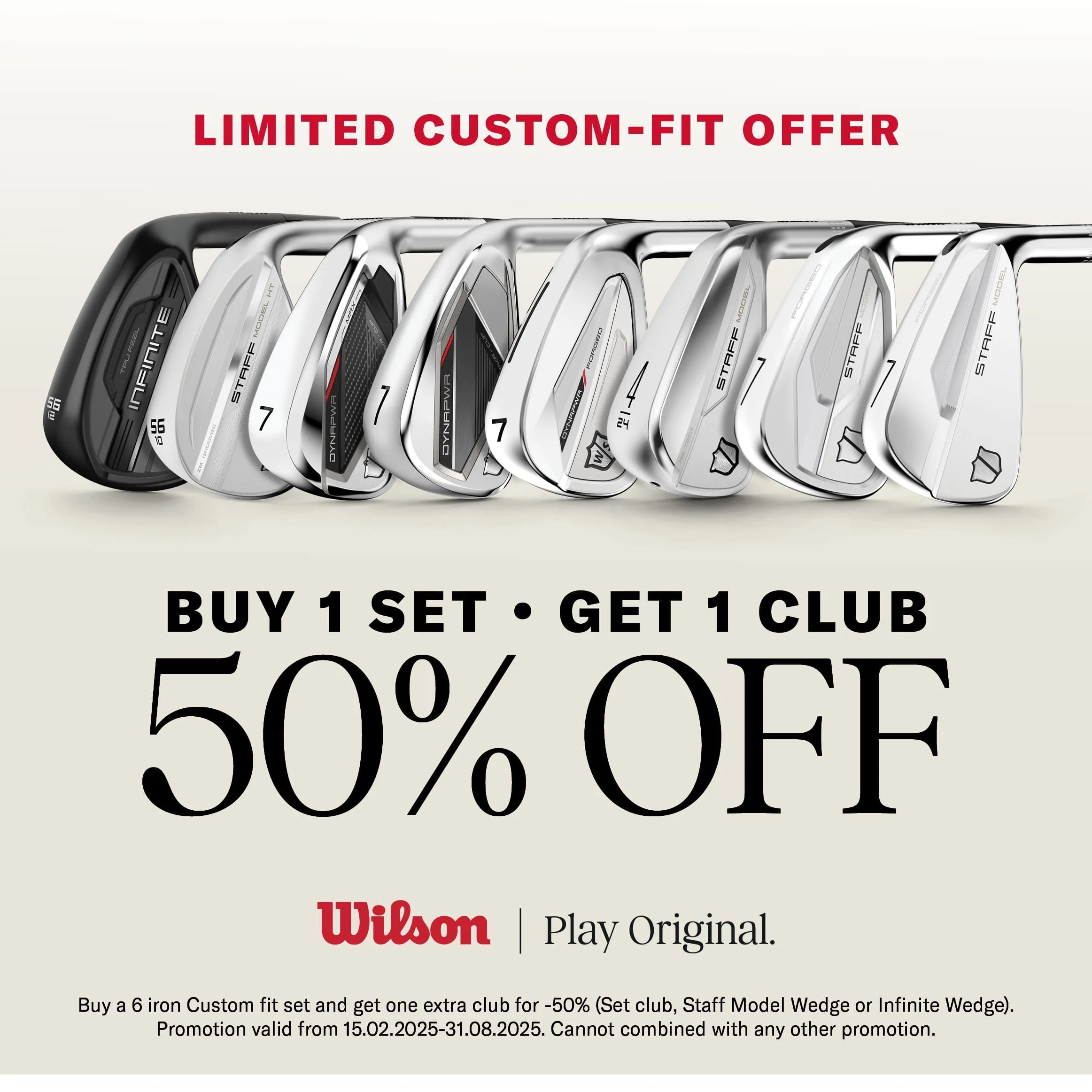 - Köp minst 6 järnklubbor, då får du köpa 1 järnklubba, wedge eller utility för halva priset